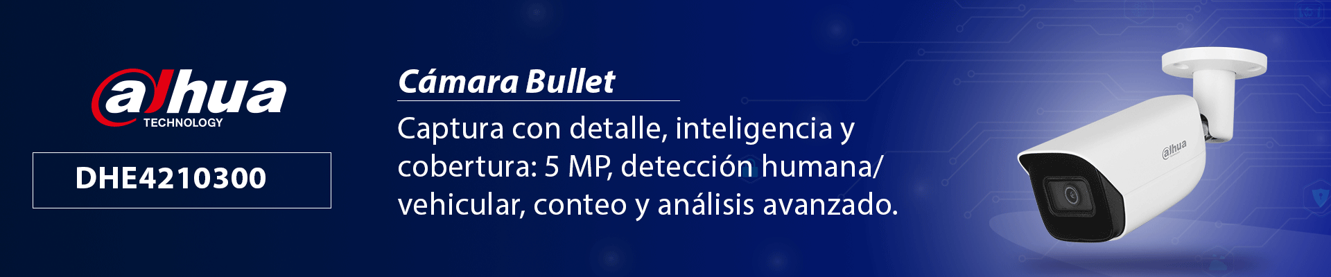 La cámara DAHUA DHE4210300 ofrece vigilancia inteligente avanzada con su sensor de 5 MP y el motor WizMind para análisis de video. Utiliza lente fija de 2.8 mm con cobertura amplia y LED infrarrojo que alcanza hasta 50 m. Soporta generación de metadatos de video para búsqueda eficiente, además de entradas/salidas de alarma y audio incorporado. Incluye ranura microSD para almacenamiento local. Gestiona eventos con protección perimetral y conteo de personas, soporta ePoE para alimentación flexible, está protegida con grado IP67, y emplea tecnología SMD 3.0 junto con AcuPick para detección inteligente.