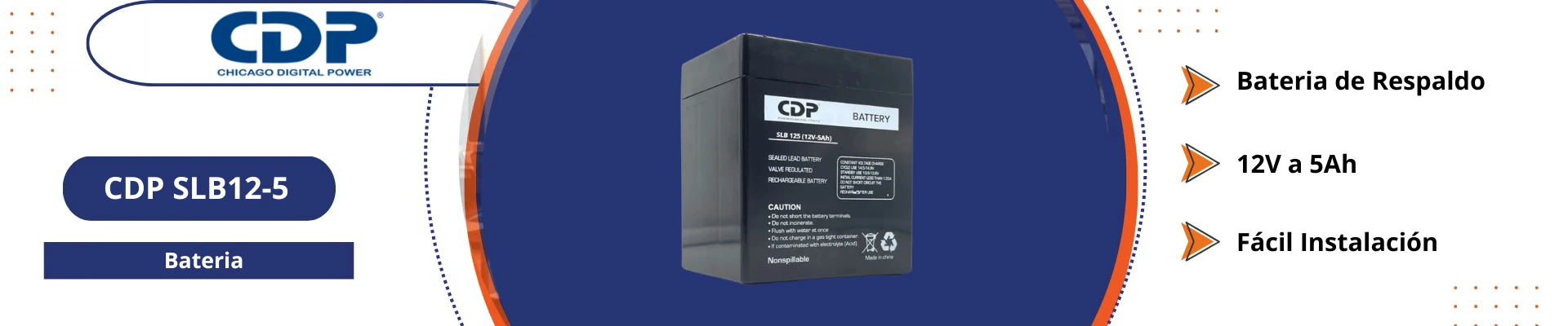 La batería CDP SLB12-5 (12 V – 5 Ah) es una batería sellada de plomo-ácido regulada por válvula (VRLA) con tecnología AGM, diseñada para proporcionar energía confiable en aplicaciones de respaldo y operación continua. Su construcción no derramable y libre de mantenimiento la hace ideal para instalaciones donde la seguridad, estabilidad y confiabilidad son críticas.