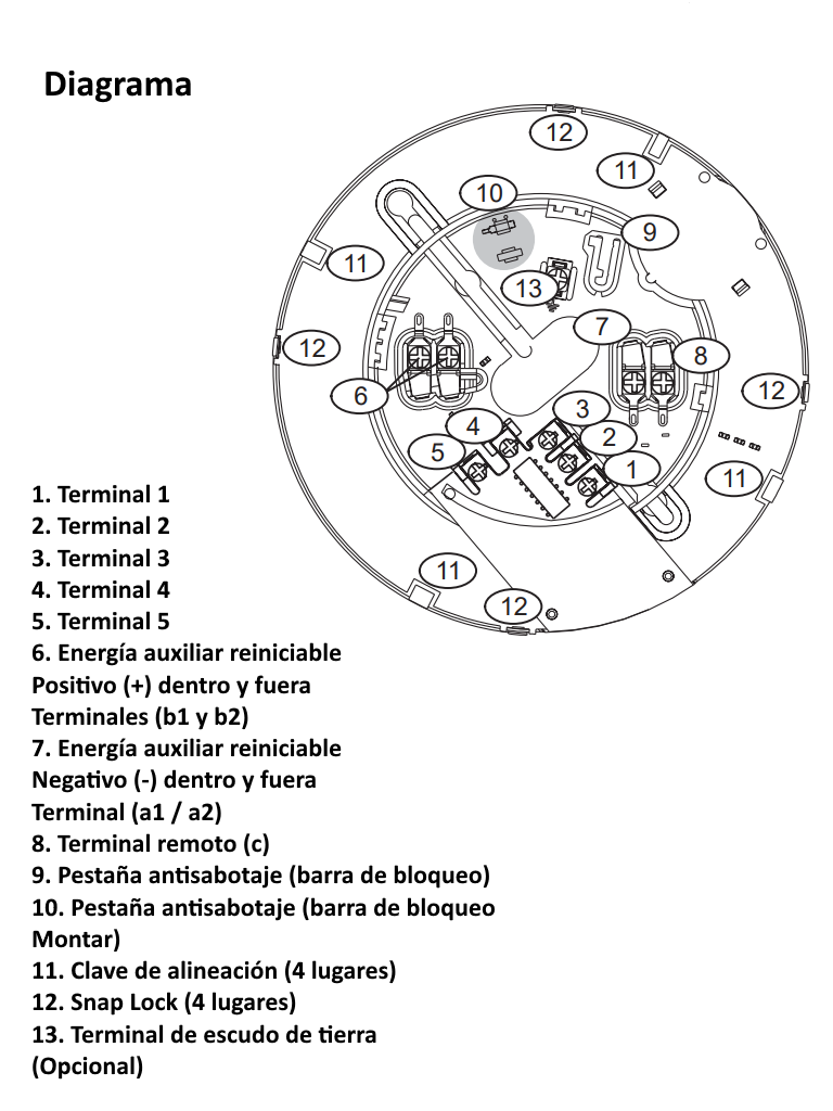 Las bases de detector F220-B6 funcionan con los detectores de humos y calor fotoeléctricos F220. F220‑B6 es una base de 12 V o 24 V para lazos de dos cables. Las otras bases de esta familia son bases de 12 V o 24 V para lazos de cuatro cables.